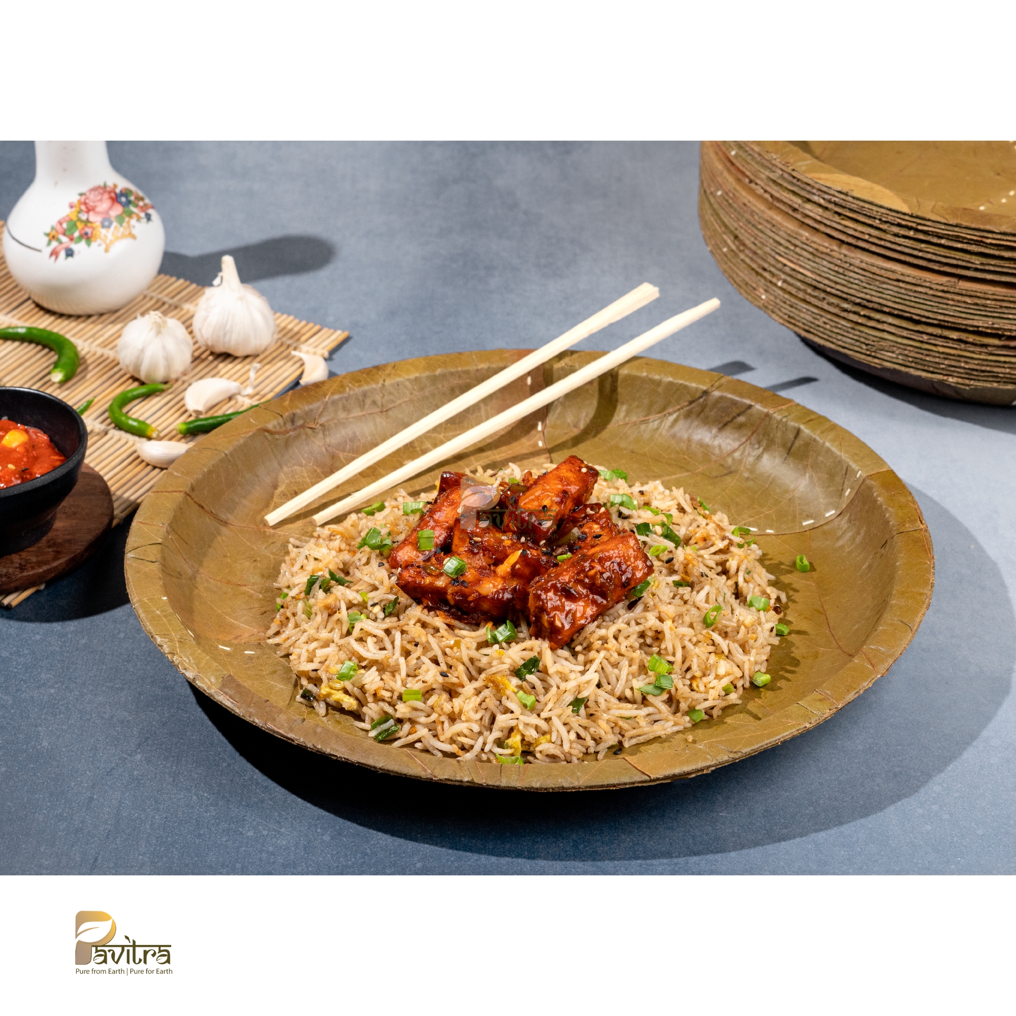 Discover Pavitra’s 12-inch olate, crafted from Siali and Palash leaves. Perfect for any occasion, Choose Pavitra for a greener & sustainable table products. Available in pack of 20